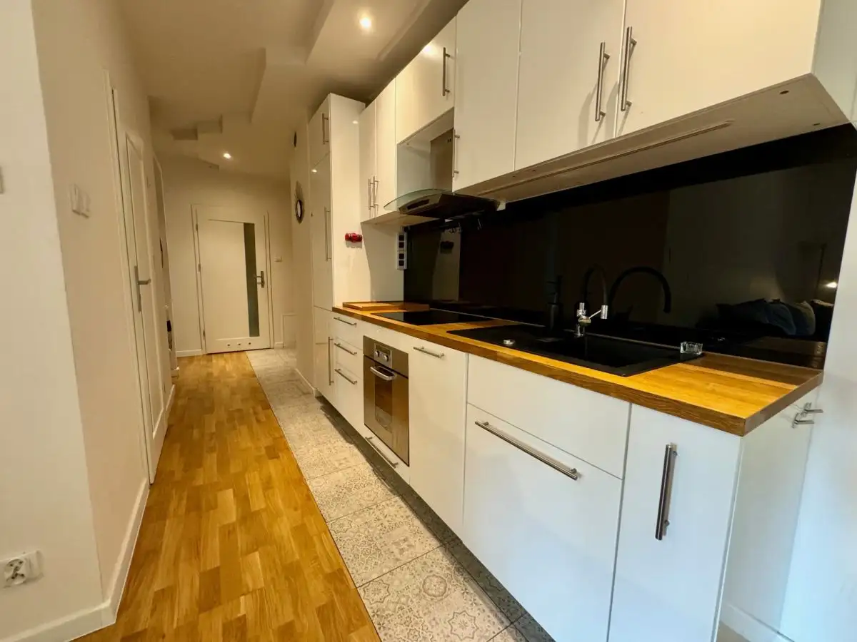 Nieruchomość cicha, jasna oraz funkcjonalna. Na podłodze występują gres oraz beska barlinecka.