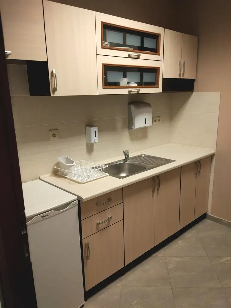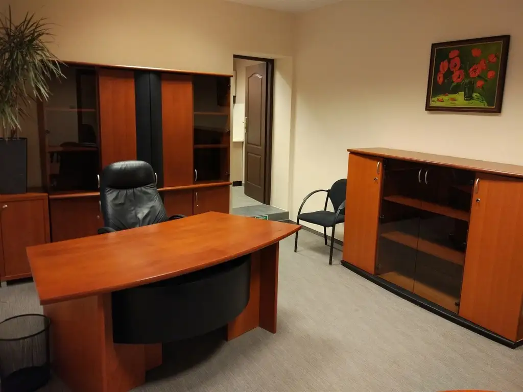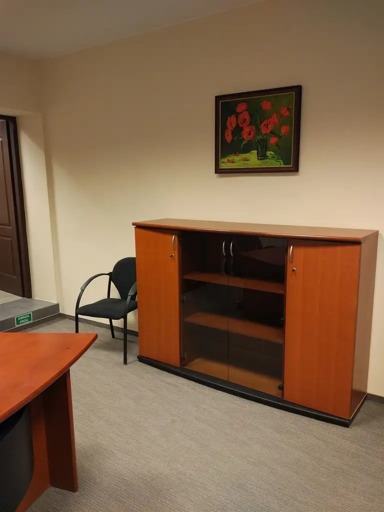 Lokal wyposażony w meble biurowe, w pełni urządzony aneks kuchenny z lodówką, żaluzje pionowe i poziome.