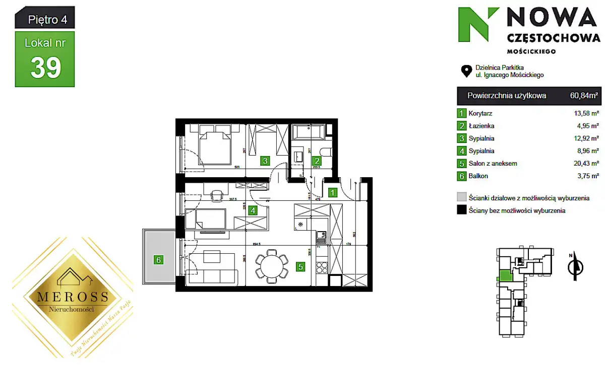 MEROSS Nieruchomości & ParkLand Inwestycjeprzedstawia do sprzedaży mieszkaniezlokalizowane w dzielnicy Parkitka w Częstochowiena osiedlu Park MałopolskaMieszkanie może być wyposażonew Inteligentny...