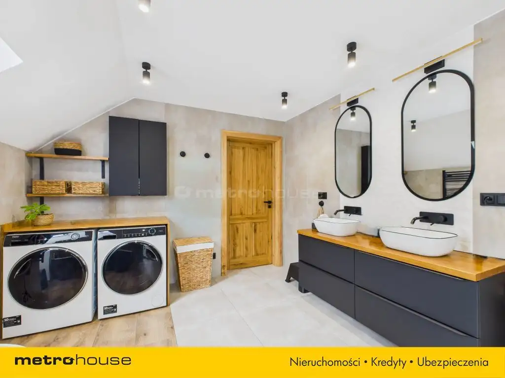 - Dwie łazienki na parterze i piętrze, funkcjonalnie zaprojektowane.