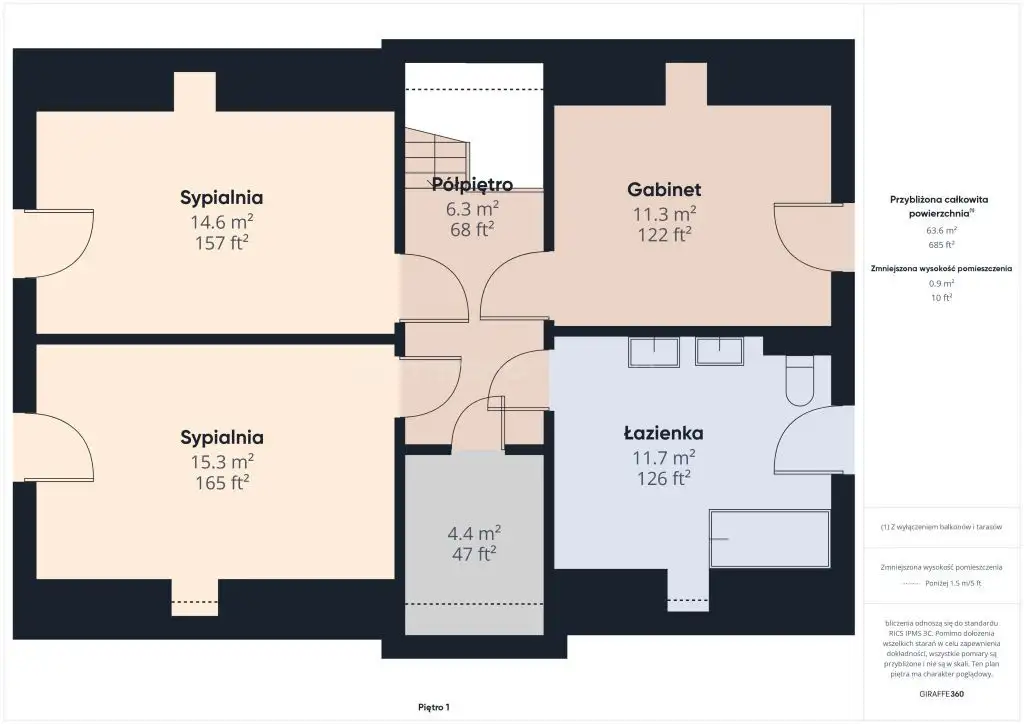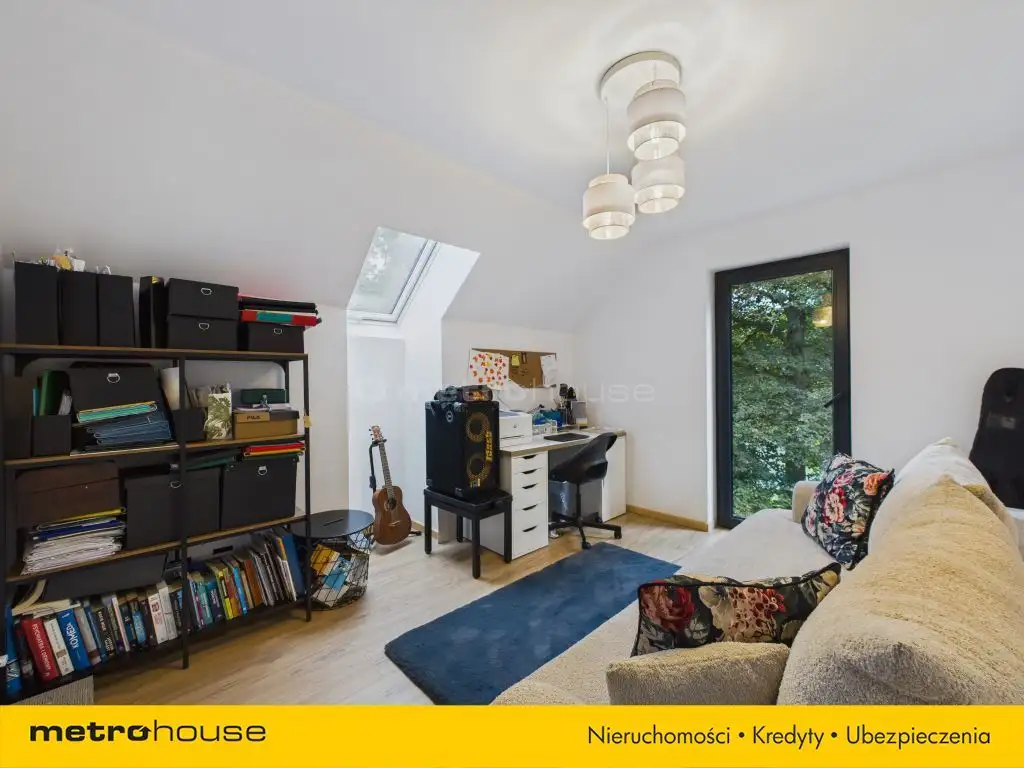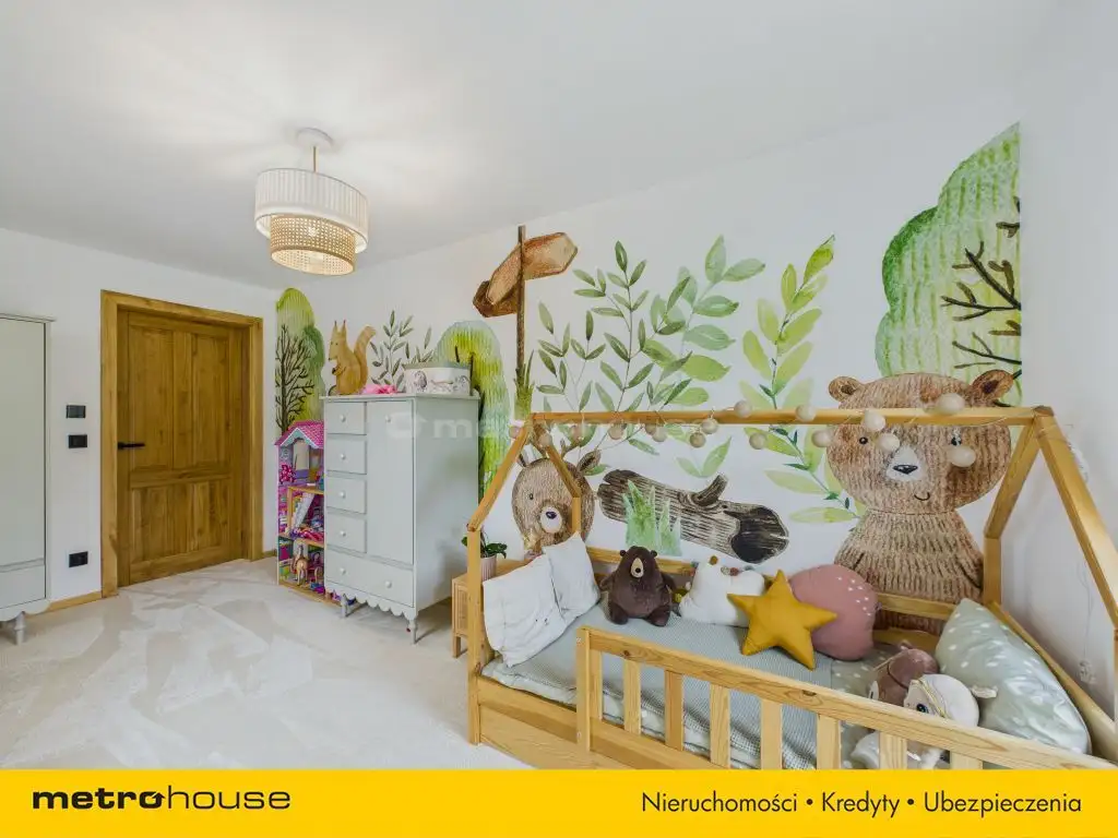 - Cztery pokoje na piętrze przestrzenie do życia, pracy i odpoczynku: sypialnia, pokój dziecięcy, gabinet oraz garderoba.