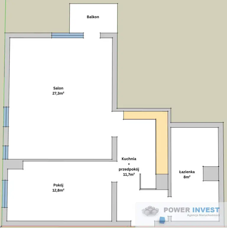 Balkon – zadaszony, z wejściem z salonu, idealny do wypoczynku.