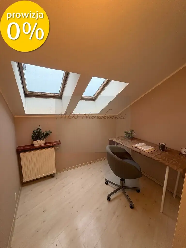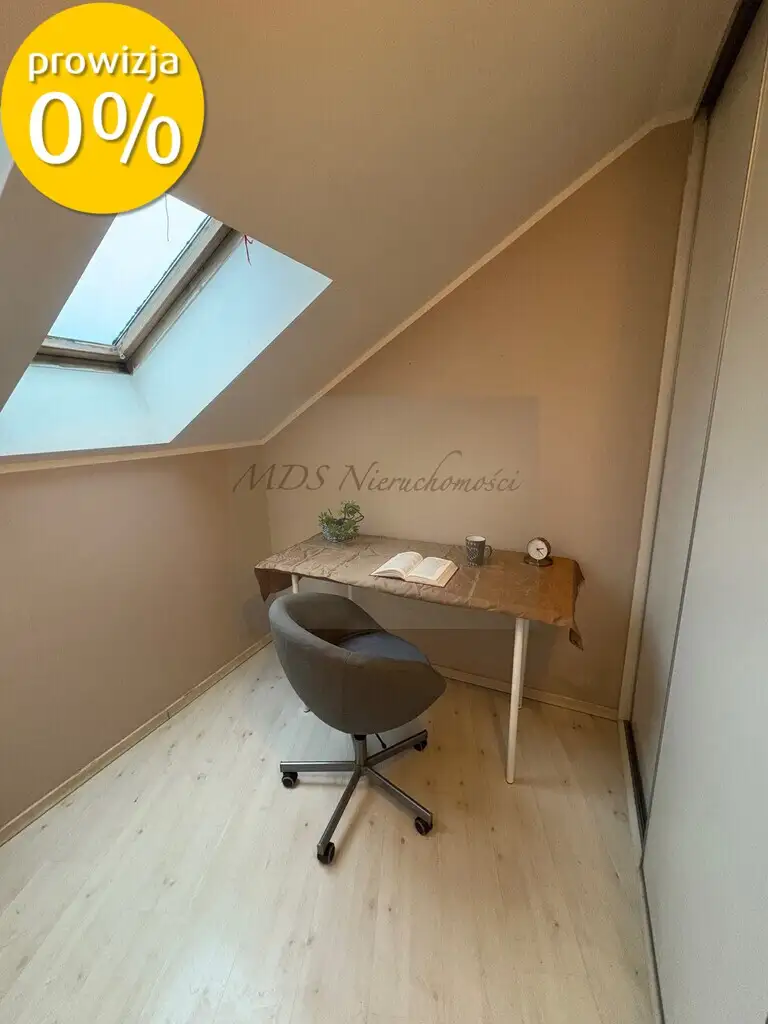 Druga sypialnia jest niewielka, z oknami połaciowymi skierowanymi na wschód, idealnie nadaje sie na gabinet, jest równie możliwość jej powiększenia.