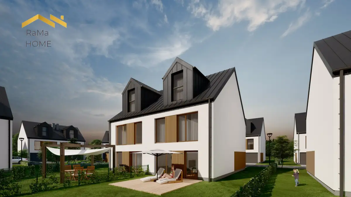 !!! Oferta dotyczy domu nr 28 z ogródkiem 258m² i garażem!!!! Kupujący nie płaci prowizji ani podatku PCC!Oferujemy funkcjonalny dom w zabudowie bliźniaczej