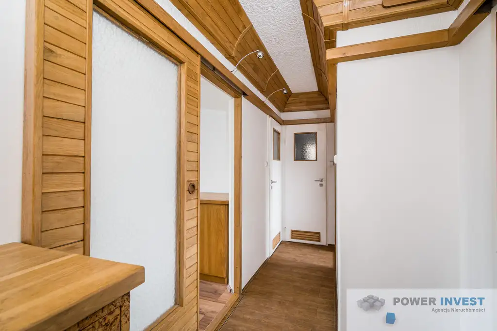 Dane techniczne:Powierzchnia: 59,6 m²Liczba pokoi: 3Ogrzewanie miejskie, ciepła woda z piecyka gazowego / w ciągu roku planowane podłączenie do sieci miejskiej /Czynsz: 665 złForma własności: pełna własnośćWyposażenie: mieszkanie częściowo umeblowane, kuchnia i łazienka wyposażone, duże szafy garderobianeDodatkowe udogodnienia: balkon, piwnica