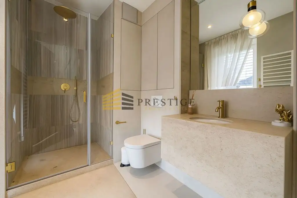 The apartment has been furnished with attention to every detail, using the highest quality materials: natural wood, stone, and designer furniture. Extensive glazing provides excellent interior lighting, and the functional layout ensures the comfort of everyday life.