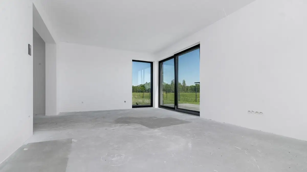 Powierzchna użytkowa156 m², działka 520 m², jednopiętrowy z garażem jednostanowiskowym w bryle budynku, wykonany został z porothermu, ocieplony styropianem grafitowym 15 cm, tynk silikonowy Lackma w połączeniu płytką elewacyjną firmy Casalgrande Padana. Zamontowano wysokiej jakości drzwi zewnętrzne drewniane „Barański”. Okna 3-szybowe na profilu Rehau w kolorze czarnym (paleta RAL). Możliwość instalacji rolet zewnętrznych. Brama garażowa elektryczna, przyłącze elektryczne dla samochodów.