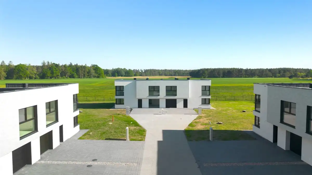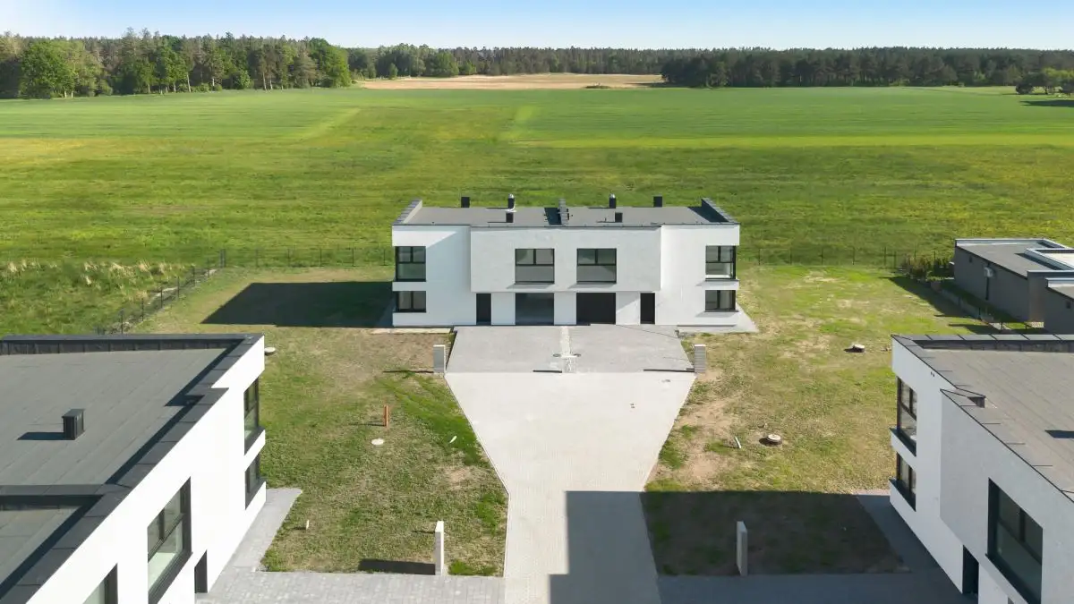 Sześć domów w zabudowie bliźniaczej, każdy o powierzchni 156 m², usytuowane na działkach o pow. od 460 m² do 630 m², znajduje się nie więcej jak 2 km w linii prostej od morza, 450 m od Jeziora Sarbsko, w spokojnej miejscowości, którą przepełniają piękne widoki i wszechobecna natura, Park Krajobrazowy, plaże, wydmy, stadnina koni.