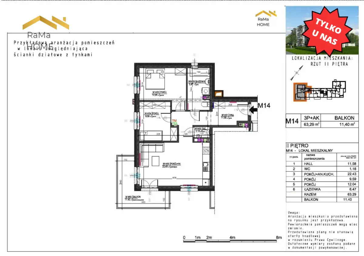 Szukasz przestronnego mieszkania, w którym Twoja rodzina poczuje się komfortowo, a każdy znajdzie swoje miejsce? To mieszkanie o powierzchni 63,29 m² z balkonem 11,15 m² to świetny wybór zarówno dla rodzin, jak i osób ceniących wygodę i przestrzeń.
