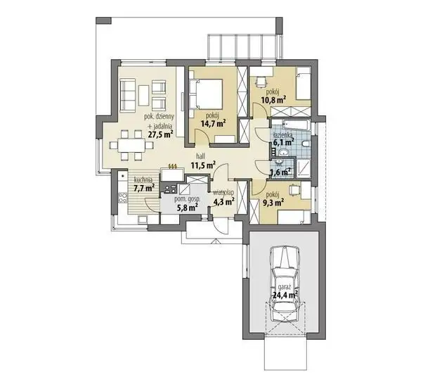 Funkcjonalny dom parterowy z nieużytkowym poddaszem :