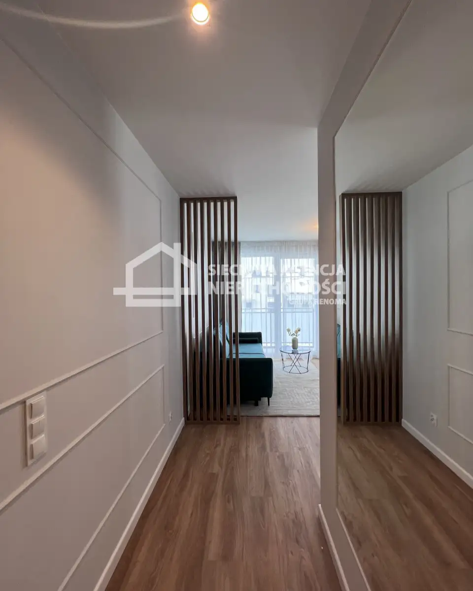 W skład mieszkania wchodzi salon z aneksem kuchennym, dwie sypialnie, łazienka z wanną i szybą prysznicową oraz WC, przedpokój z szafą w zabudowie.
