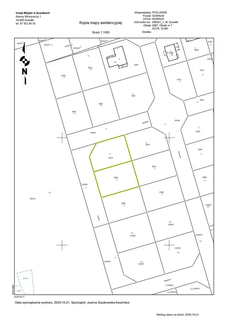 1. Oznaczona działką nr 35378 o powierzchni 0,0874 ha, niezabudowana, położona w Suwałkach w Obrębie nr 7, wchodząca w skład nieruchomości oznaczonej księgą wieczystą nr SU1S/00031671/3. Działka zgodnie z miejscowym planem zagospodarowania przestrzennego południowo - zachodniego rejonu ulicy Zastawie w Suwałkach zatwierdzonym Uchwałą LXVI/871/2024 Rady Miejskiej w Suwałkach z dnia 31.01.2024 roku, objęta jest konturem 5MNW - teren zabudowy mieszkaniowej jednorodzinnej wolnostojącej. Nieruchomość przeznaczona jest do sprzedaży w drodze przetargu ustnego nieograniczonego.