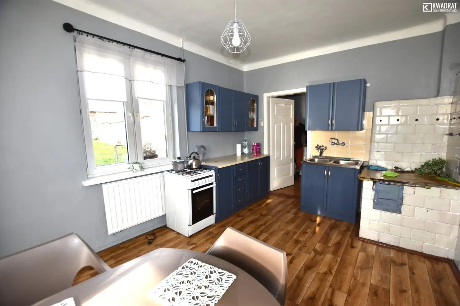 Na powierzchnię 72 m² domu składają się dwa pokoje, kuchnia, przedpokój, łazienka z WC, spiżarka, piwnica. Okna PCV. Dużym atutem tej nieruchomości są dwa budynki gospodarcze murowane z cegły o powierzchni 120 m² i 100 m².