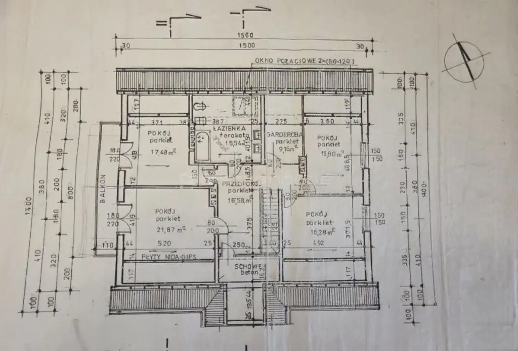 7 pokoi, 2 łazienki, kuchnia ze spiżarnią, garderoby w każdym pokoju, duży balkon, wysokie poddasze do aranżacji.