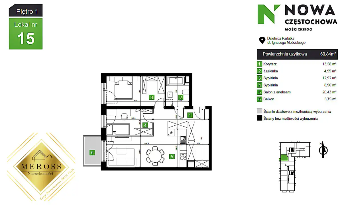 MEROSS Nieruchomości & Nowa Deweloperprzedstawia do sprzedaży mieszkaniezlokalizowane w dzielnicy Parkitka w Częstochowiena osiedlu Nowa Częstochowa Mościckiego Mieszkanie może być...