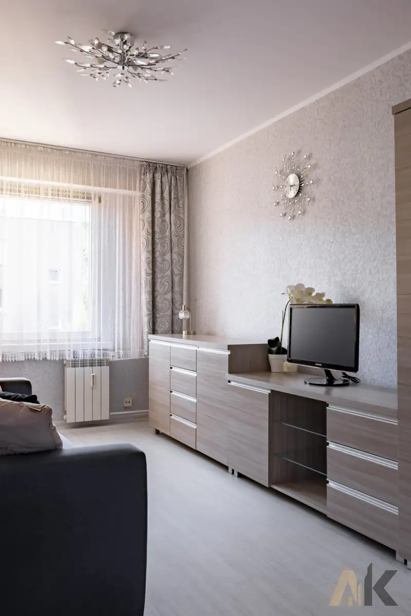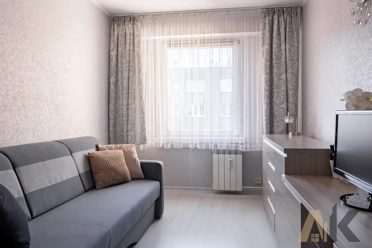 Salon - jasny i świetnie nasłoneczniony, z dużymi oknami i wyjściem na balkon.