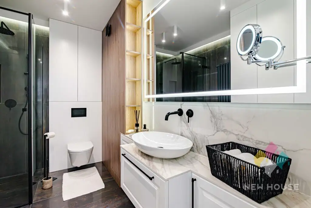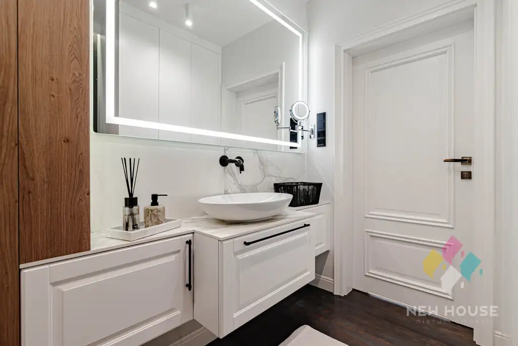 Aranżacja oraz wykończenie mieszkania wykonane z najwyższą starannością oraz użyciem materiałów najwyższej klasy.