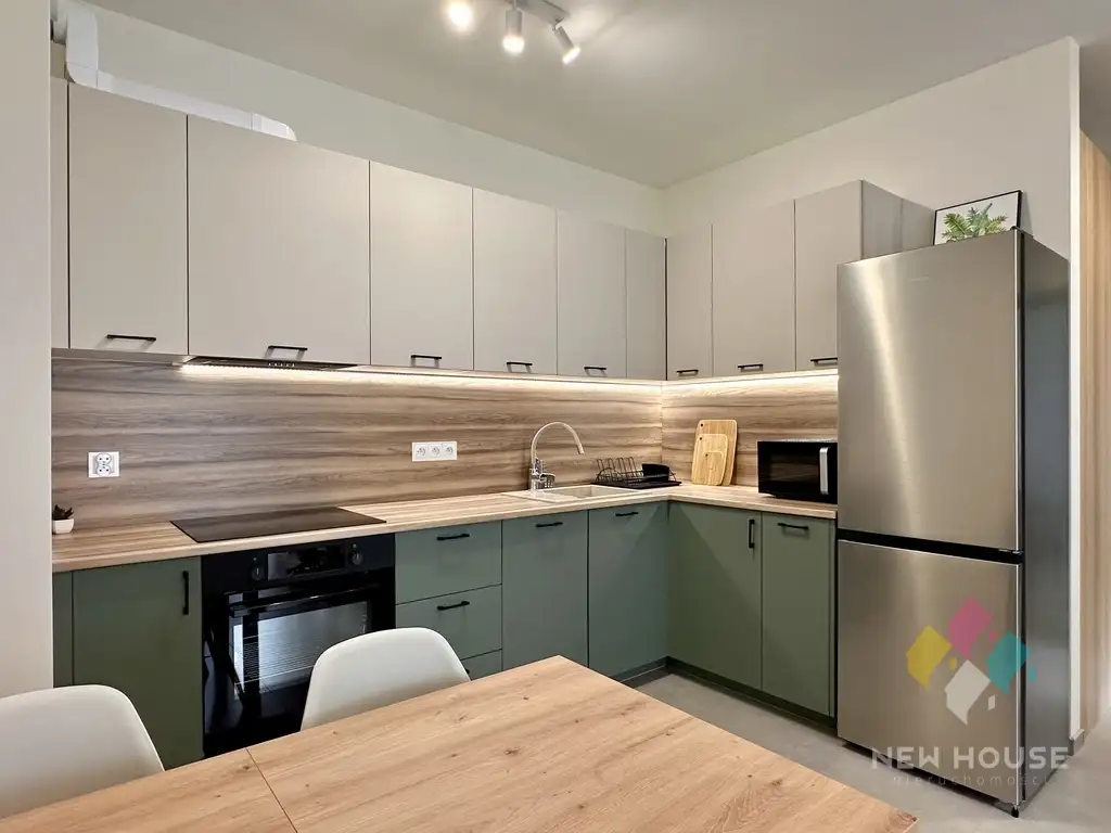 Mieszkanie w pełni umeblowane nowoczesnymi meblami oraz wyposażone w bardzo dobrej jakości sprzęt AGD (pralka, lodówko-zamrażalka, zmywarka, płyta elektryczna, piekarnik, okap). Znajdziemy w nim również domowy zestaw startowy (suszarkę do ubrań, deskę do prasowania, odkurzacz, sztućce, naczynia, garnki, zestaw do sprzątania (wszystkie rzeczy nowe, nie używane).