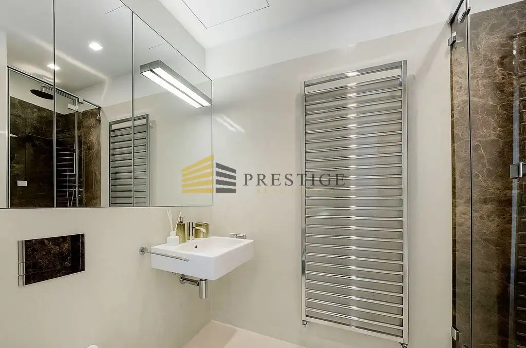 The apartment is equipped with intelligent apartment management system HMS. The system allows you to manipulate the temperature, lighting or position of blinds from any room This is thanks to a variety of programs tailored to your needs and even to the time of day. It is also possible to control the system through a tablet. Additional benefits include central air conditioning, underfloor heating in the bathroom and intelligent window cleaning system.