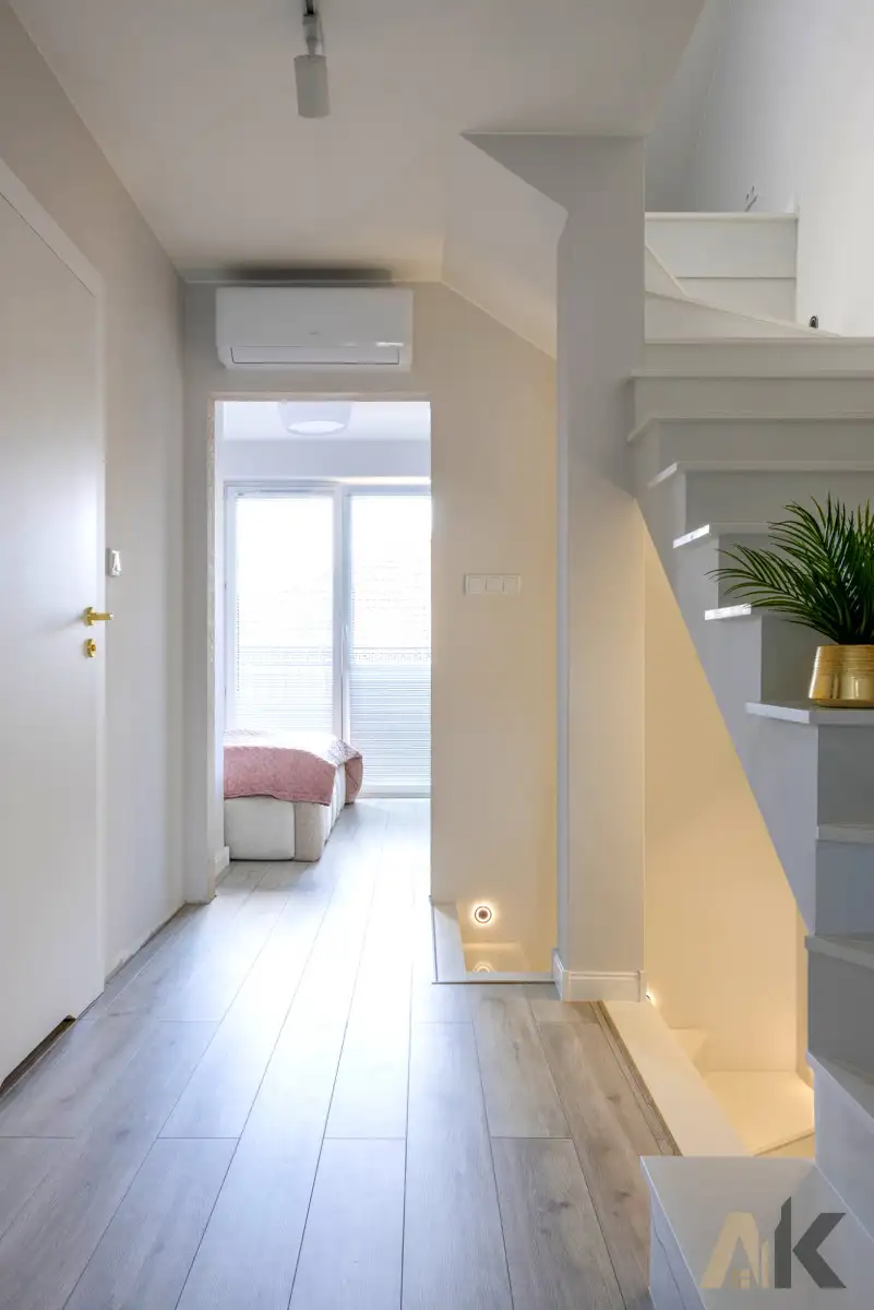 Dodatkowe udogodnienia, to klasyczny balkon oraz 2 miejsca postojowe przynależne do segmentu. W oknach i rolety. Schody marmurowe podświetlane na dwie kondygnacje, stacja uzdatniania wody, wideo-domofon, nawodnienie ogródka.