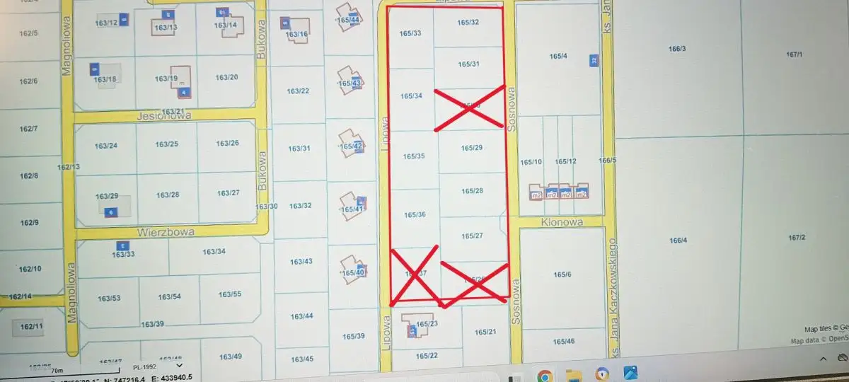 Działki posiadają następujące powierzchnie oraz numery ewidencyjne: