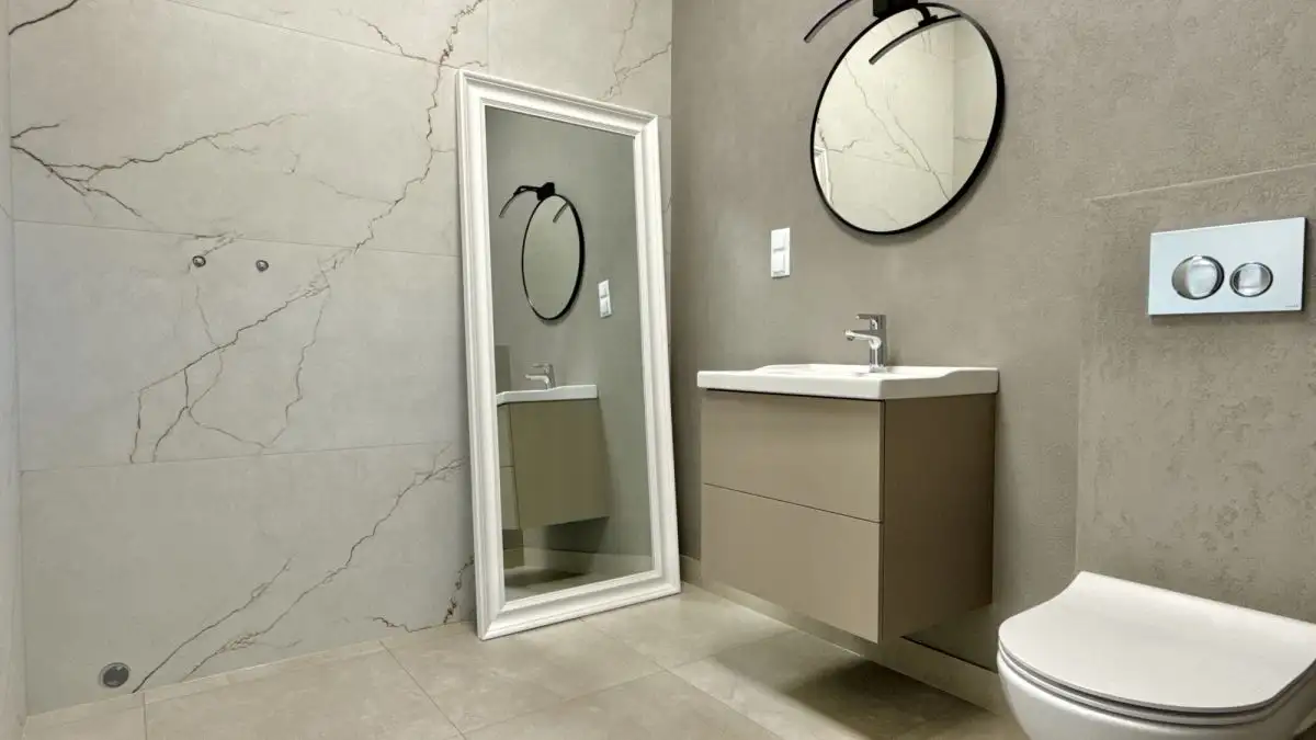 • Nowoczesna łazienka z możliwością montażu prysznica - wszystkie instalacje gotowe.