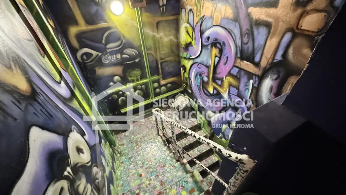 Lokal głównie jest dwupoziomowy jednak ma dodatkową część kondygnacji na piętrze gdzie aktualnie znajduję się pomieszczenie biurowe o pow.15m².