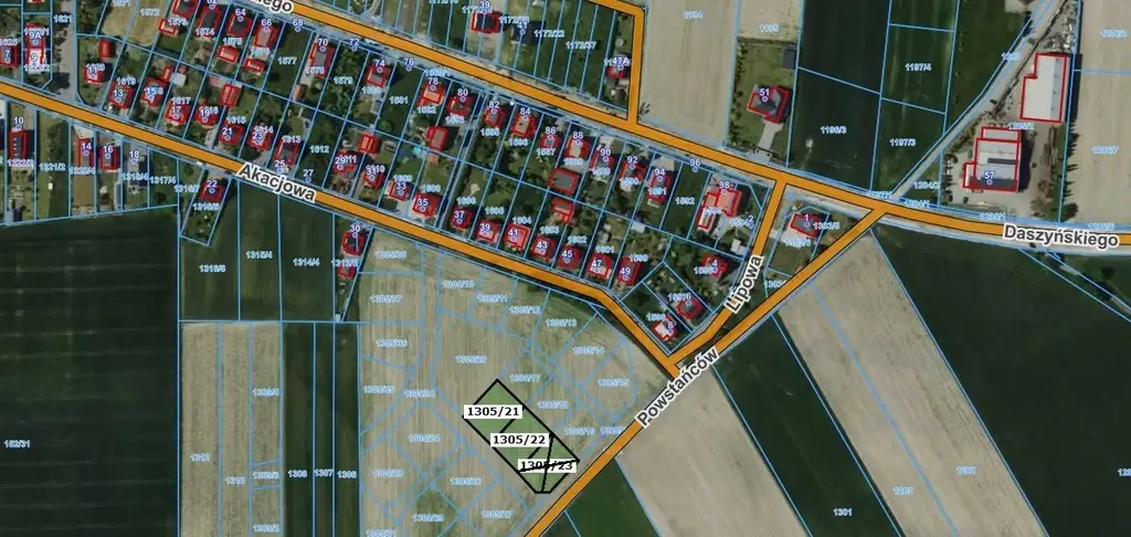 położonych w okolicy ulic Akacjowej, Powstańców i Sportowej,