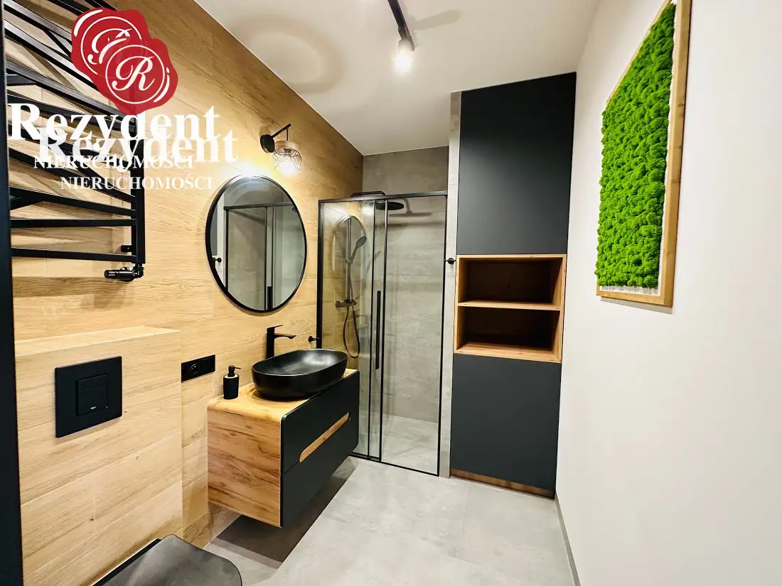 - łazienka ma około 4,5m² - wyposażona w kabinę prysznicową, umywalkę, WC, zabudowę wnękową z wbudowaną pralką