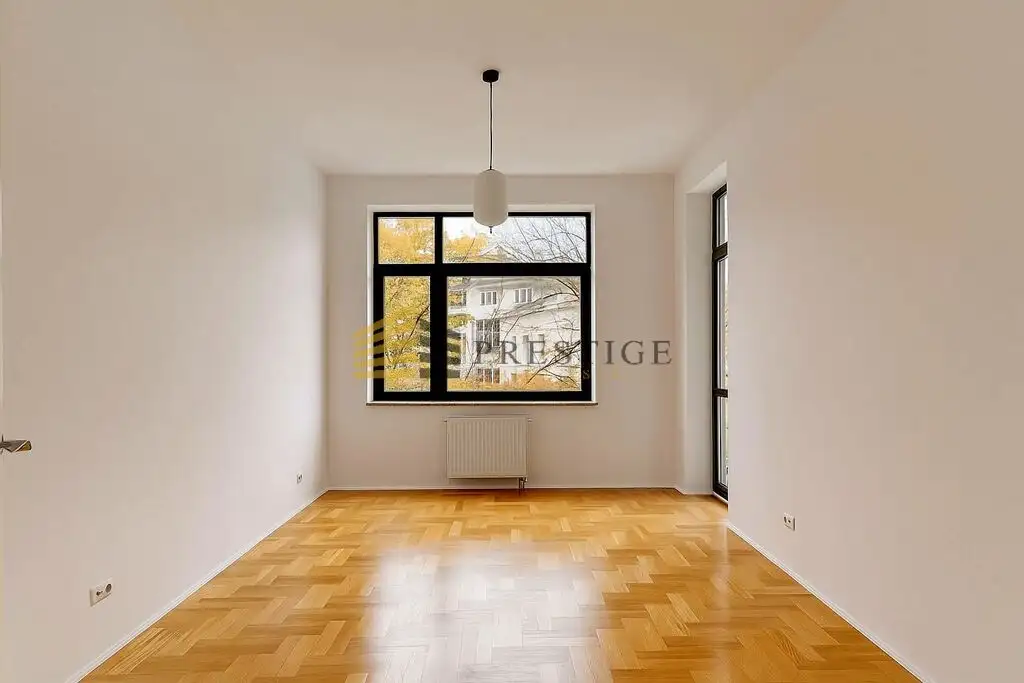 An elegant and spacious apartment for rent located in a quiet, green part of Warsaw, right next to one of the most beautiful city parks - Łazienki Królewskie