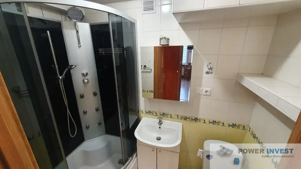 Łazienka z kabiną prysznicową. Mieszkanie jest funkcjonalne. Ze względu na układ oraz lokalizację doskonale sprawdzi się na wynajem.
