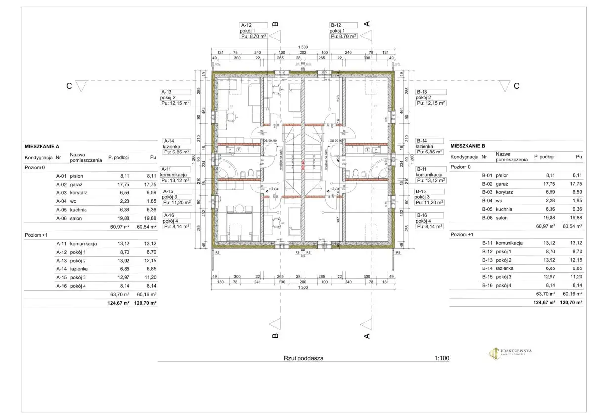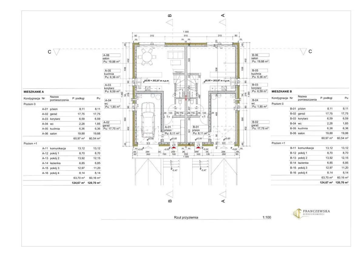 Nieruchomość o powierzchni całkowitej 124 m² i użytkowej 116,87 m². Nieruchomość położona jest na zielonej, zadbanej działce o powierzchni ok 450 m².
