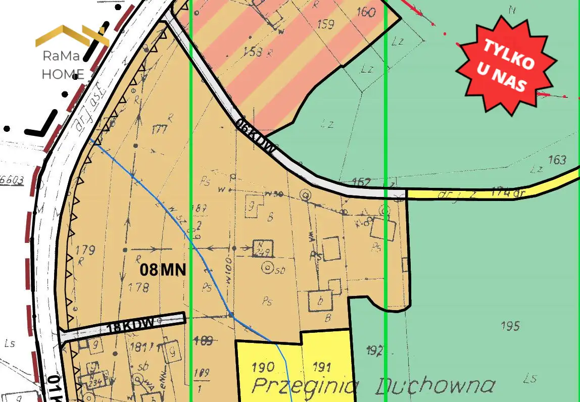 W miejscowym planie zagospodarowania przestrzennego (MPZP) działka oznaczona symbolem 08MN - tereny pod zabudowę mieszkaniową jednorodzinną.