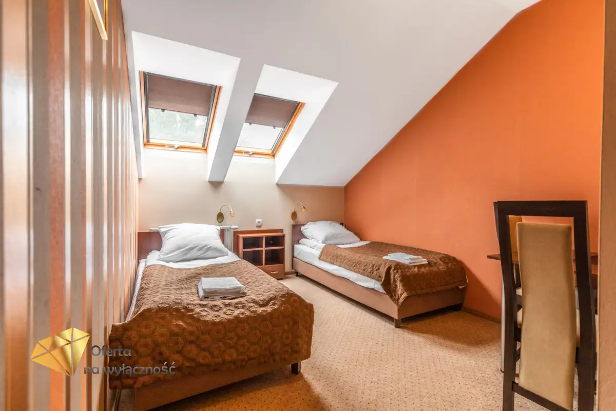 - 13 komfortowych pokoi dwuosobowych z łazienkami oraz apartament