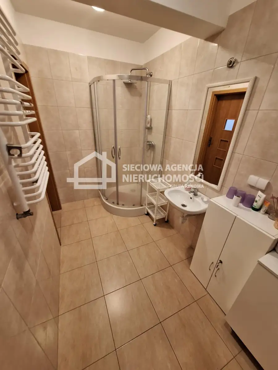 Nieruchomość składa się z dużego pokoju z aneksem kuchennym, sypialni, przestronnej łazienki oraz przedpokoju. Do mieszkania przynależy komórka lokatorska. Wysoki parter.