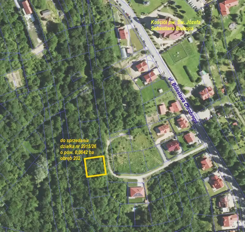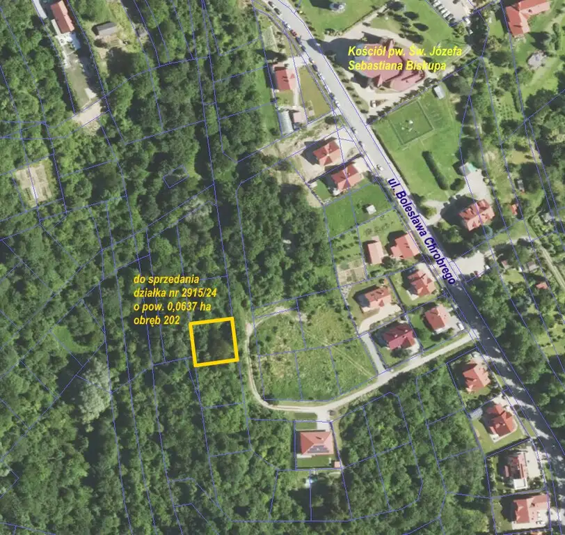 2. Działki są niezabudowane. Nieruchomości położone są w terenie pofałdowanym, na wzniesieniu, ze znacznym spadkiem z kierunku wschodniego na zachodni. Teren na działkach ukształtowany jest schodkowo. Kształty działek regularne, zbliżone do kwadratów. Działki porośnięte są dziko rosnącymi drzewami i krzewami. Dostęp przedmiotowych nieruchomości do drogi publicznej – ulicy Bolesława Chrobrego, odbywać się będzie przez sięgacz w postaci drogi gruntowej, częściowo utwardzonej żwirem i tłuczniem (działka nr 2915/16). Najbliższe otoczenie nieruchomości stanowi zabudowa mieszkaniowa jednorodzinna.
