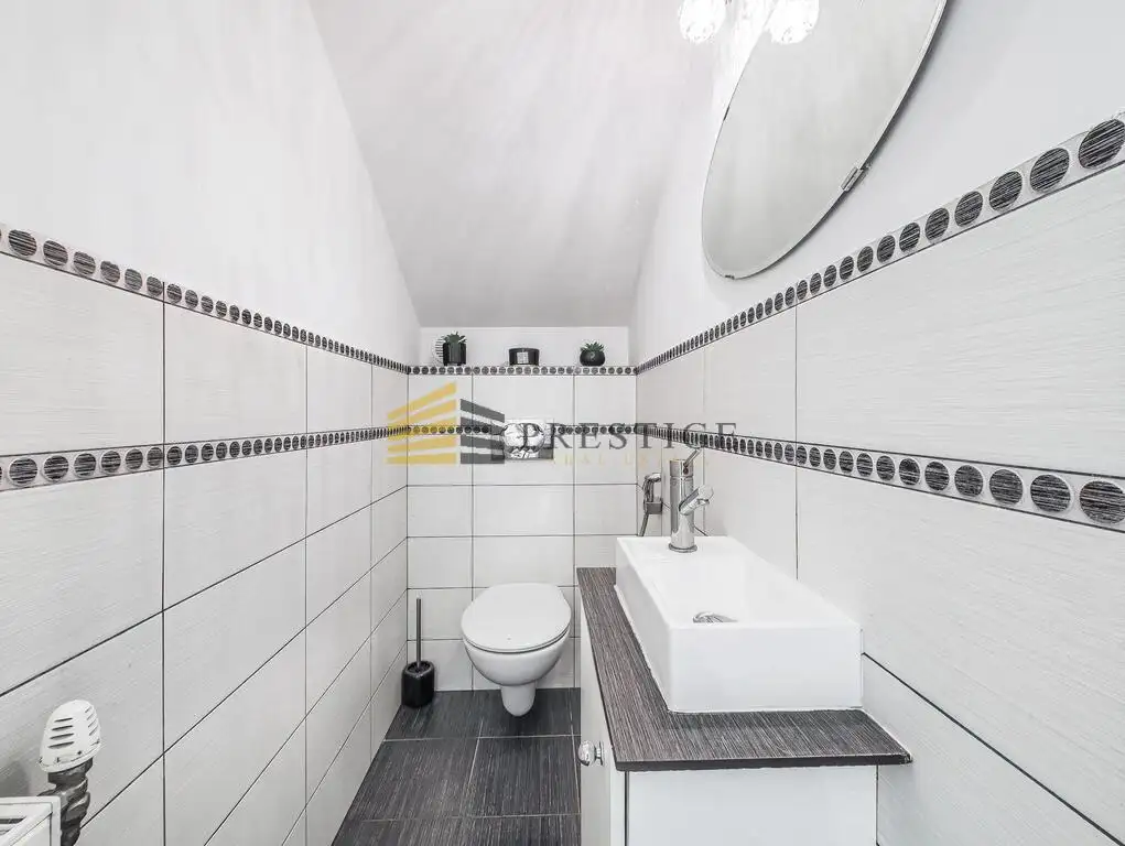 The layout of the rooms in this house is very functional and provides adequate privacy for each family member. On the ground floor there is a living room, a separate kitchen, a toilet, a spacious hall and a garage. On the first floor there is a master bedroom with a dressing room and a luxurious bathroom, two additional bedrooms and another bathroom. The second floor is a spacious guest room, a study/office and a utility room with a gas stove and an additional bathroom. This is a place that can be adapted to individual needs, for example as a work space or a guest apartment.