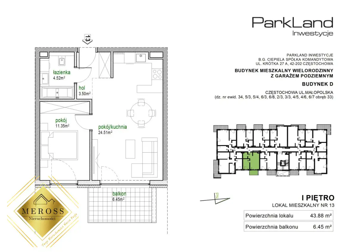 MEROSS Nieruchomości & ParkLand Inwestycjeprzedstawia do sprzedaży mieszkanie