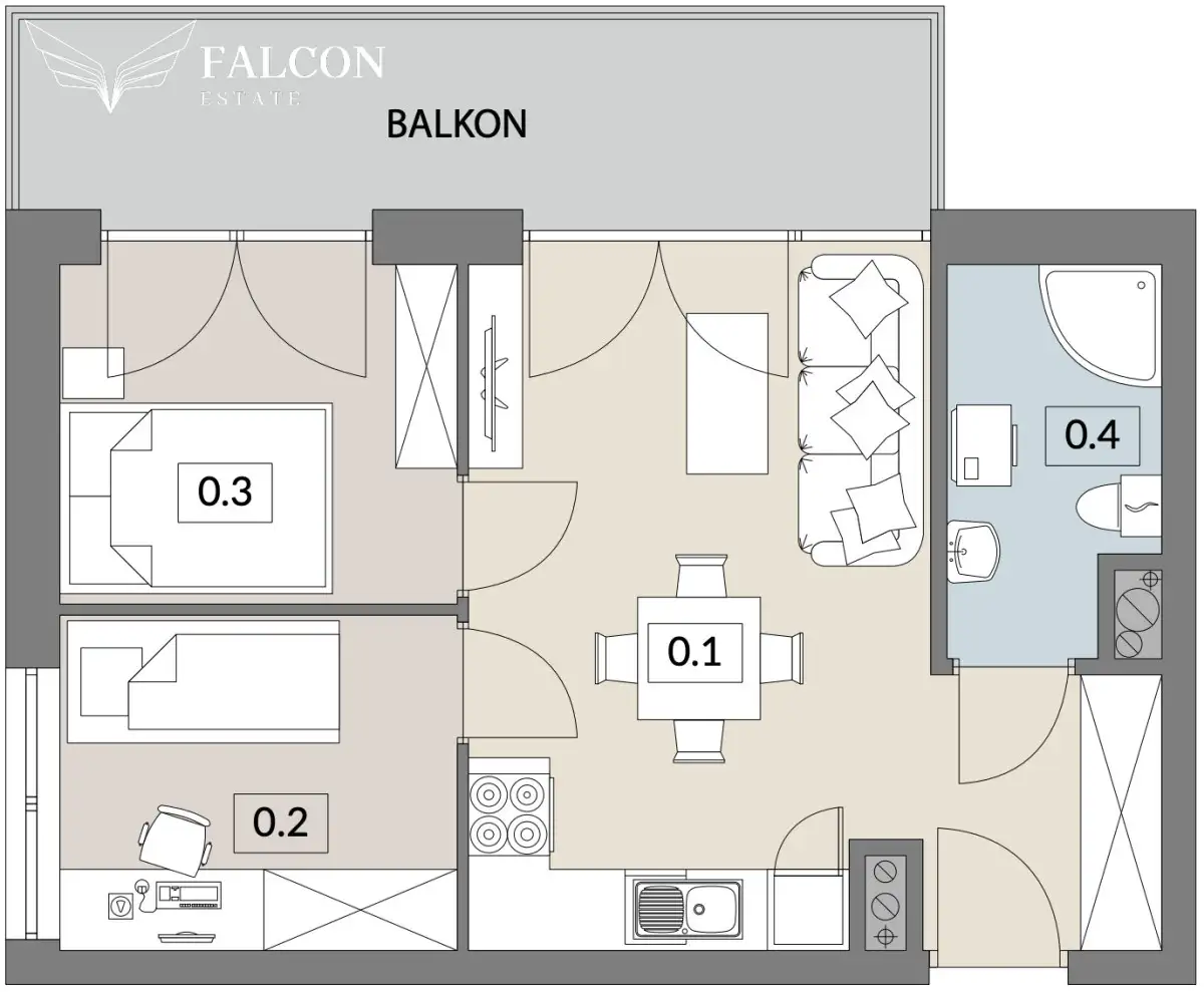 3 pokojowego apartamentu z balkonem w stanie deweloperskim