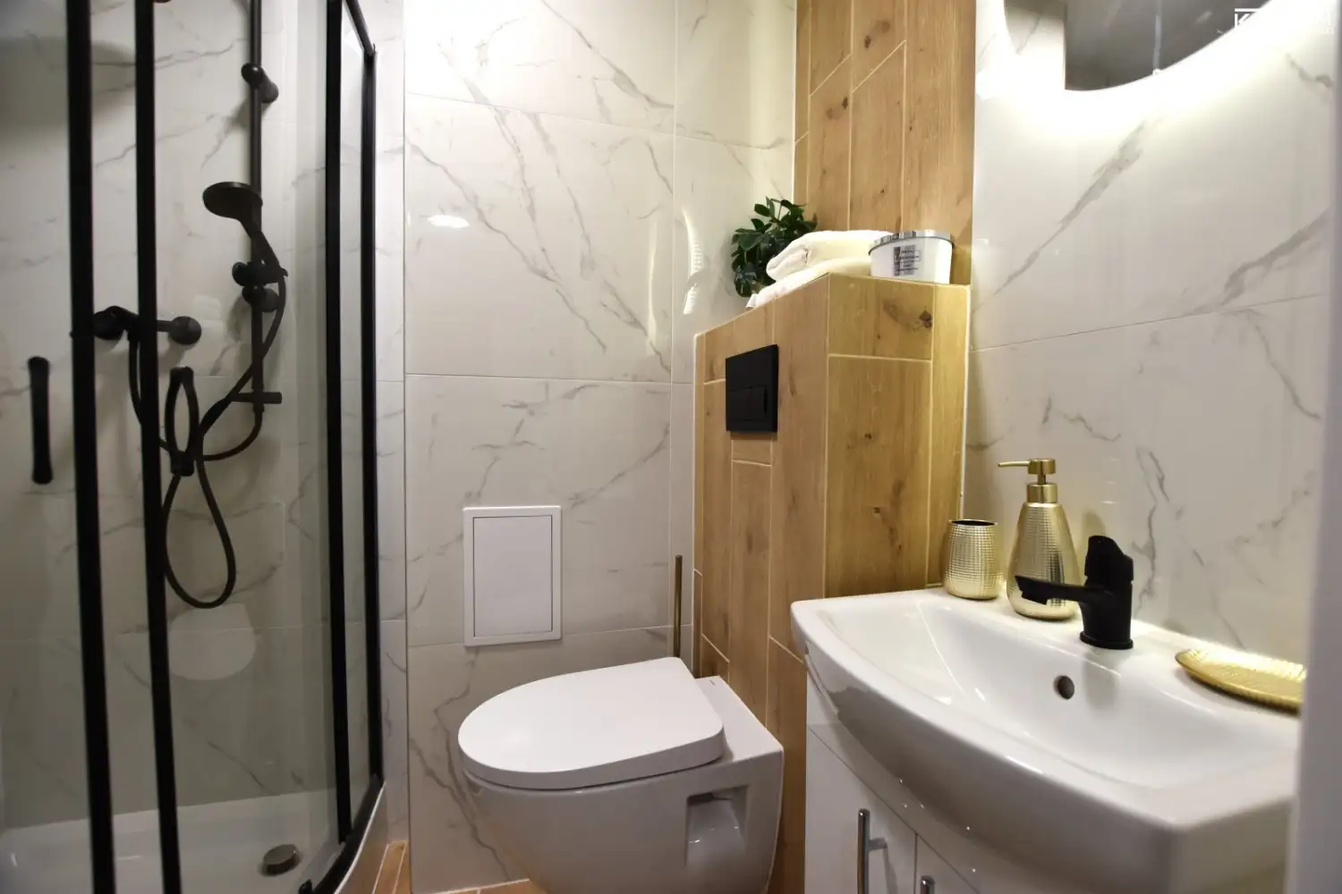 Ciepła woda z sieci miejskiej bez piecyka gazowego.
