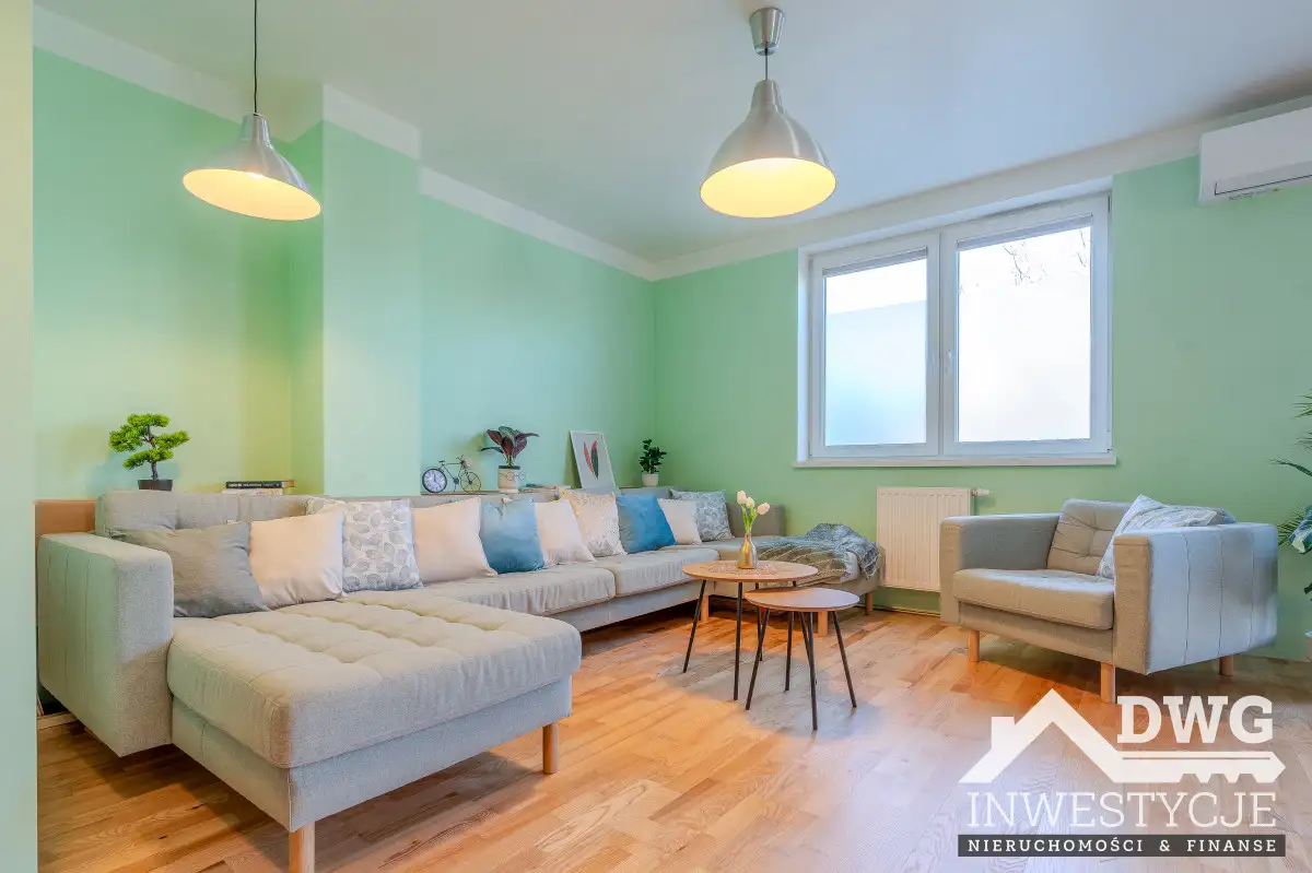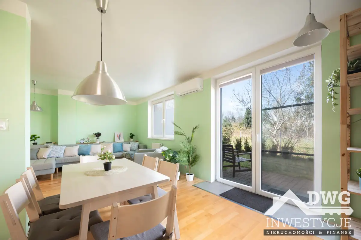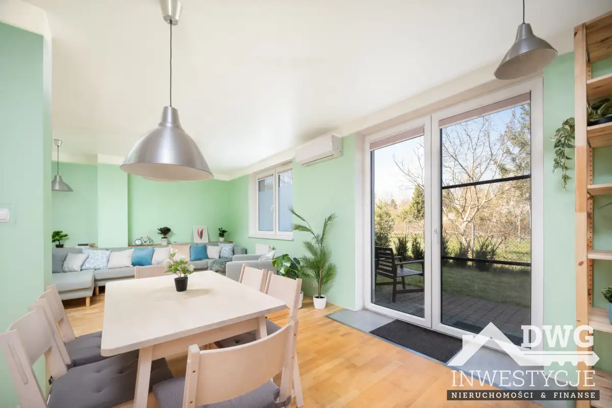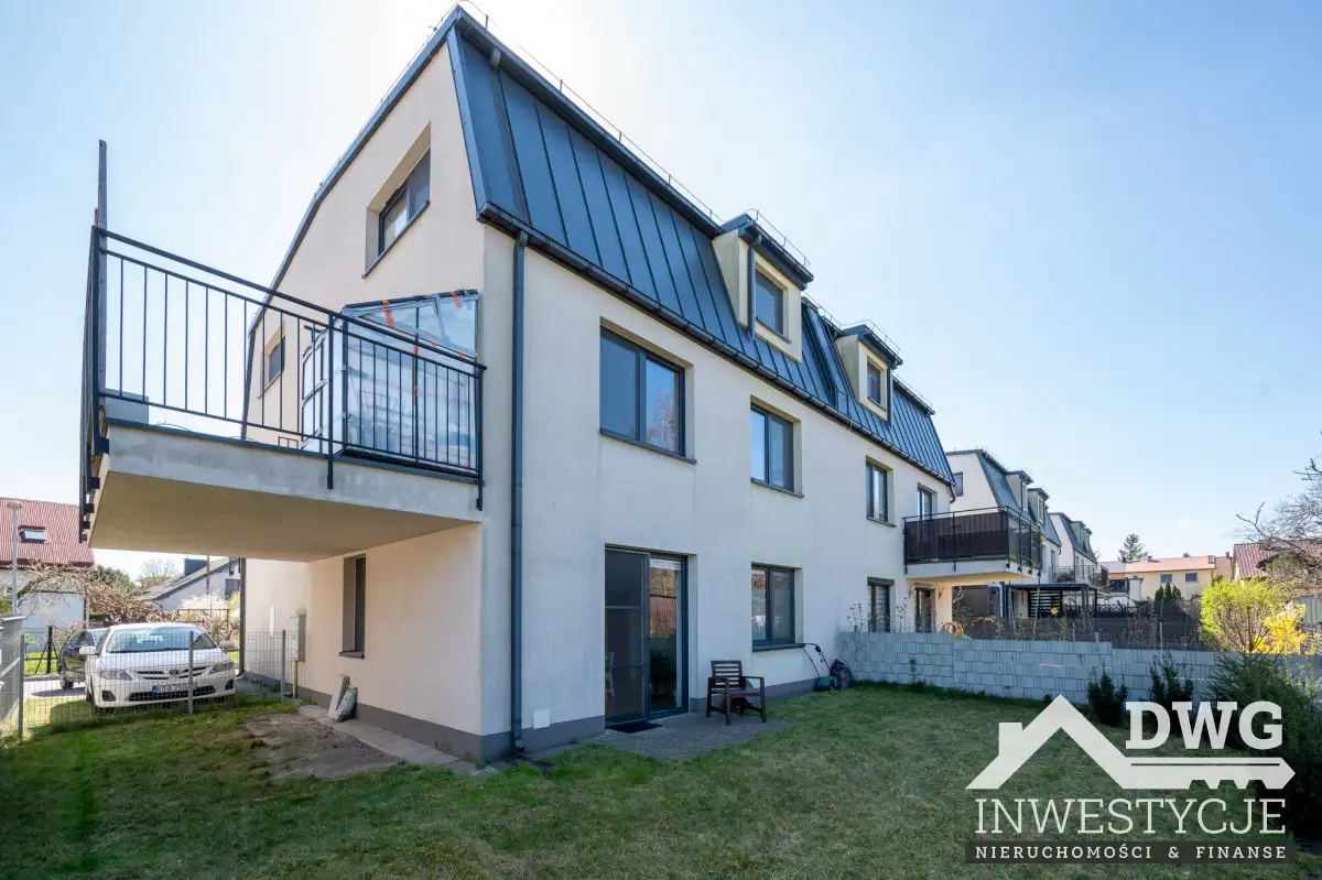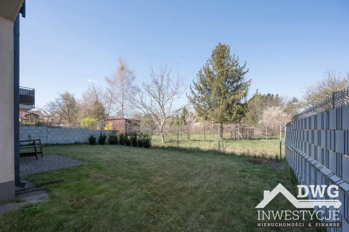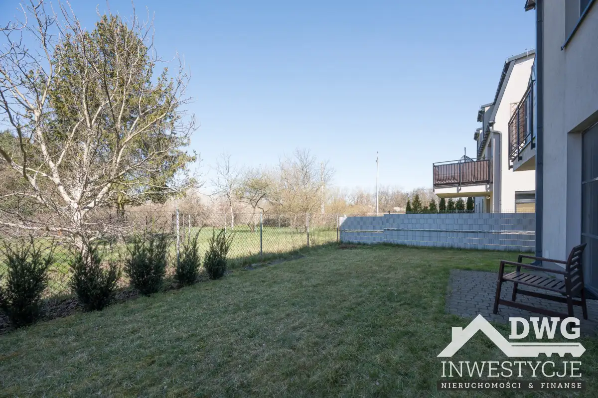 Do mieszkania przynależy dużo ogród o powierzchni około 110m² który zaskakuje swoją prywatnością gdyż działka sąsiadująca jest niezabudowana i obfituje w nasadzenia.