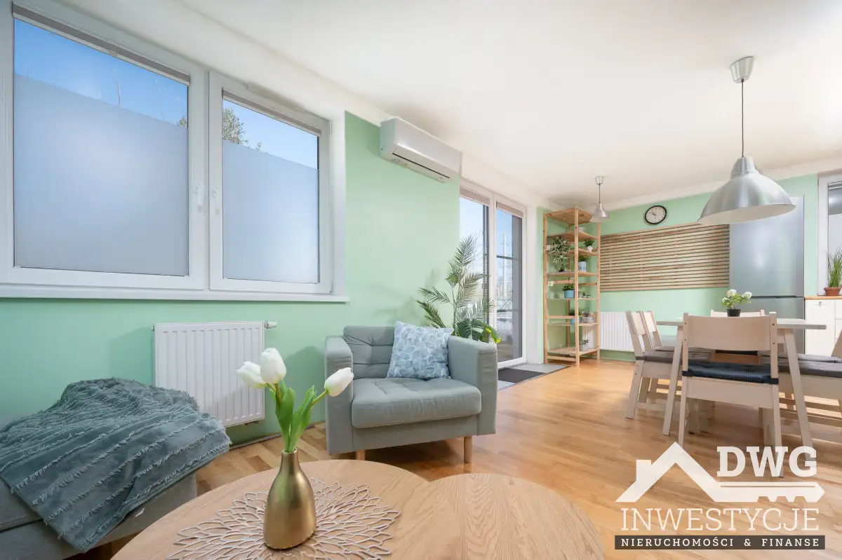 Osiedle z 2017 roku, niska zabudowa, dużo zieleni i pełna infrastruktura wokół. W zasięgu 10 minut: kolej aglomeracyjna,