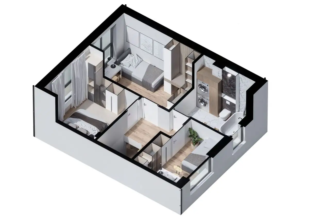 - 3 sypialnie ( 10,5 m²; 9,5 m²; 8 m² )