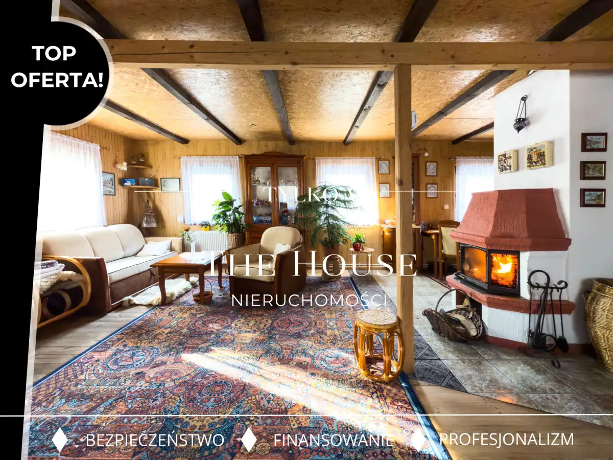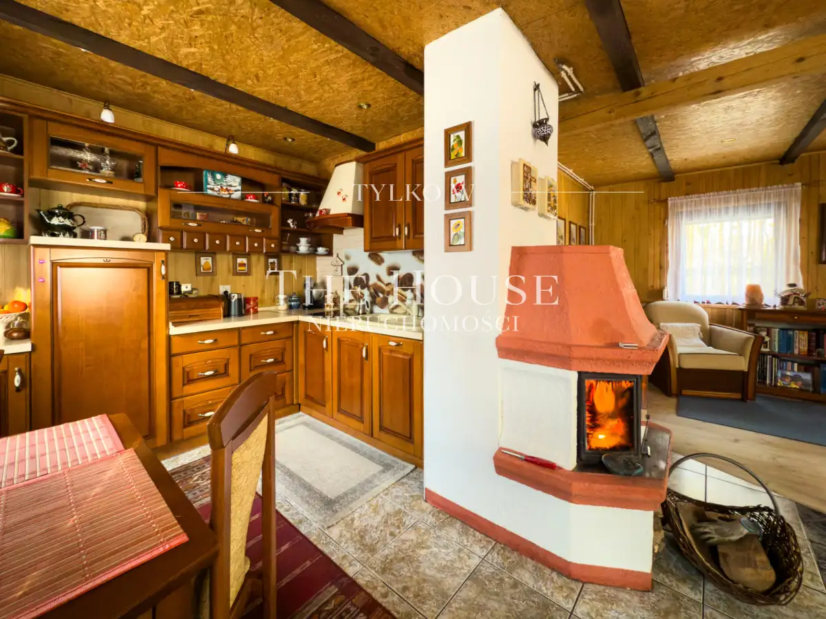 użytkowany całorocznie. Dom o konstrukcji drewnianej. Wyposażony w rolety oraz instalację alarmową. Ogrzewanie kominkowe oraz w razie potrzeby elektryczne z termostatem umożliwiające komfortowe użytkowanie przez cały rok. Do dyspozycji Właścicieli jest wiata samochodowa wraz z drewutnią do sezonowania drewna. Posesja ogrodzona, zadbany ogród z licznymi nasadzeniami.