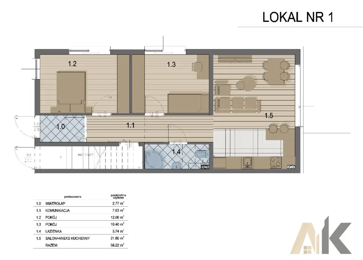 mieszkanie o powierzchni 58,22m² górne 515 000 zł