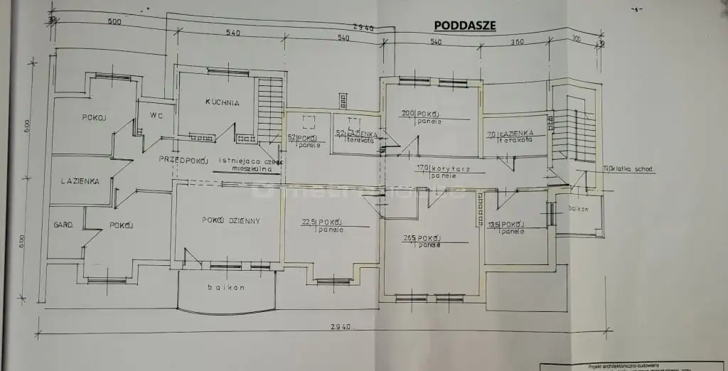 Piętro: 231,70 m² powierzchni mieszkalnej obecnie 8 pokoi, 3 łazienki i kuchnia. Możliwość wydzielenia 3 niezależnych apartamentów pod wynajem krótko- lub długoterminowy.