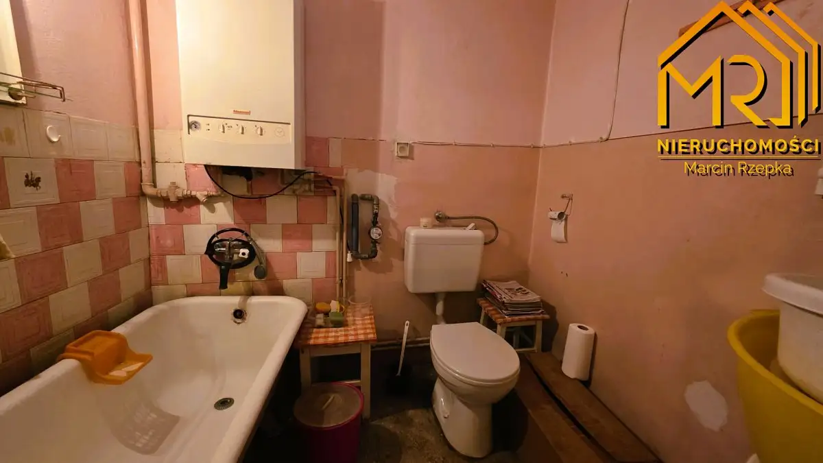 Do lokalu przynależy także piwnica oraz udział w strychu, co zapewnia dodatkową przestrzeń do przechowywania. Mieszkanie jest środkowe, ciepłe, z wymienionymi oknami na plastikowe. Na podłogach zachowany parkiet oraz linoleum. Nieruchomość wymaga remontu, co daje możliwość własnej aranżacji wnętrza i dostosowania go do indywidualnych potrzeb. Na życzenie klienta lokal będzie opróżniony z wszystkich rzeczy.