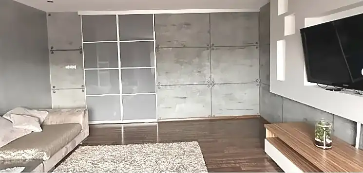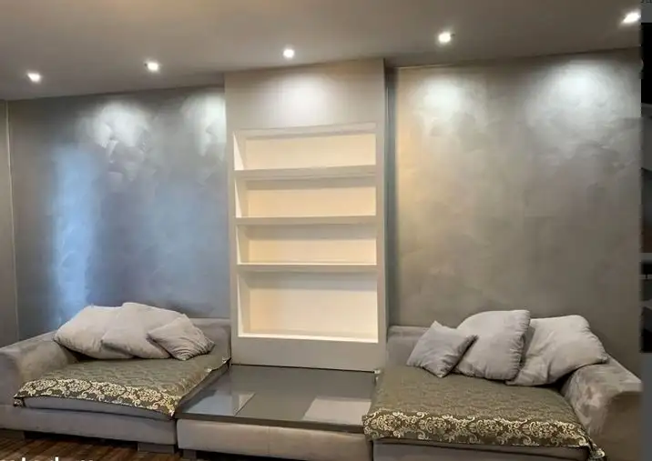-przedpokój - posadzka w kaflach, ściany w gładziach, sufit z oświetleniem punktowym.