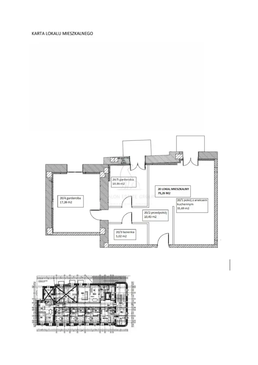 Oferowane mieszkanie ma powierzchnię 79,26 m², oferuje 2 pokoje i znajduje się na 2 piętrze.