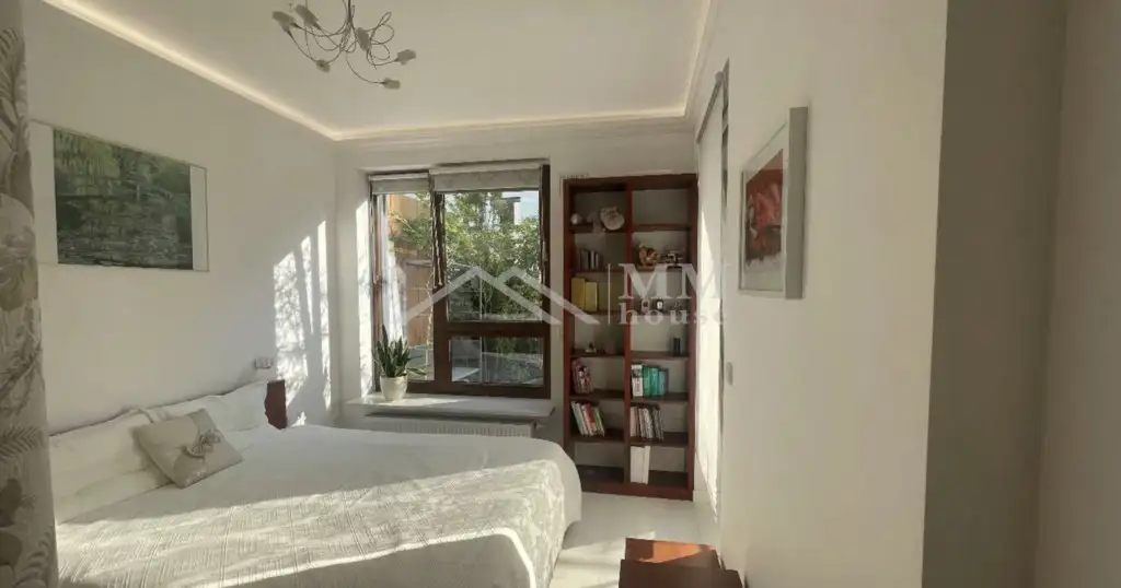 - widnej sypialni z wyjściem do ogrodu oraz garderobą